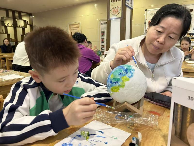 活动现场,社教老师通过互动提问的方式向大家讲述了中秋的历史渊源与传统习俗,加深了大家对这一佳节的理解。随后,老师分发了精心准备的手工材料,并展示了提前制作的月球灯样品。在志愿者们的协助下,孩子们热情投入,动手绘制并组装属于自己的月球灯。不一会儿,一盏盏象征团圆与祝福的月球灯陆续完成,现场洋溢着温馨与创造的喜悦。