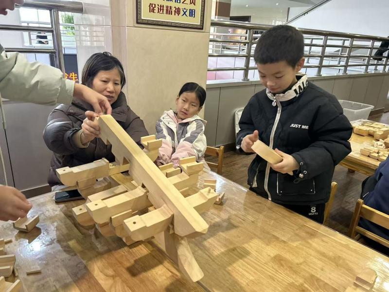 为增进青少年对中华建筑艺术的认知与兴趣,1月31日,济源市博物馆举办榫与卯的艺术——斗拱搭建活动。社教老师首先介绍了传统建筑的核心构件——斗拱,阐述其如何以榫卯咬合,无需一钉一铆,便能承载宏大屋顶,形成稳固结构与优美飞檐。