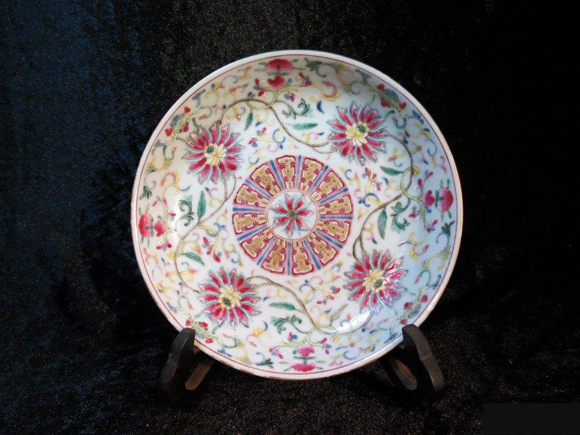 5、款识,清官窑多署皇帝年号款,多六字、四字的,如“大清康熙年制”、“乾隆年制”等。民窑有干支年款,吉祥语款,私家款及图记款等。有印,刻,青花,红釉,金彩,料彩等多种,楷篆均有。例如康熙楷多篆少,前期字体宽大,笔画粗重而挺拔,顿捺明显;后期字体渐趋清秀。雍正时期楷,篆并用,款识己定为专人书写,故各类瓷器上的字体基本一致。楷书六字三行横排双圆圈体式,是早期流行的款识,款的书法一般写得柔弱略草,也有少数款写得工整有力。六字两行围有双圈或方框竖写的,时间略晚,字体工整秀丽。乾隆以后篆多楷少,大多书写规整,笔道严谨,根平竖直,书法生动。嘉庆瓷器款识基本承袭乾隆款识特点:以篆书六字三行为主。官窑款字体工整,结构严谨。多用青花书写,也有红彩、金彩及刻款。还有少量楷书款。道光时期多篆书,少有楷书。篆款书体为铁线篆,行笔圆润流畅;楷书款,圆润工整,篆书款,六字三行横排的,无圈栏;六字一行横排的,多数落于器外口沿下或中腰。楷书款,多六字三行横式排列,围以双圈环,有青花、金彩、红彩款及刻款。白釉器青花款与刻款兼有,刻款为六字楷书两行竖式。窑变釉、茶叶末釉及炉钧釉器是刻款,为篆书六字三行横式。